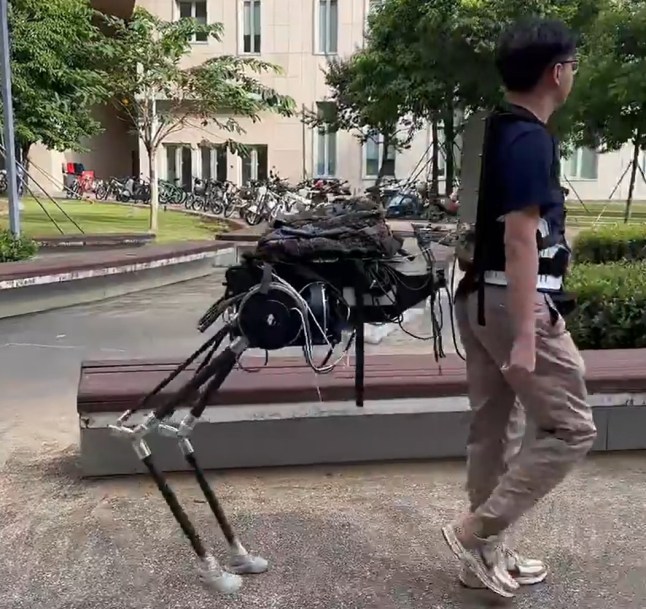 The wearable tech gives people two extra mechanical legs which makes it easier to carry heavy loads